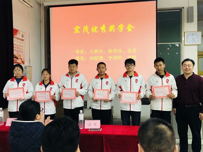 杜诗琳宣读获奖名单,各位老师分别为宏茂优秀学生奖学金、励志助学金和进步奖学金的同学颁奖。班主任吕楠老师做结发言,她向江苏宏茂建设工程有限公司表示由衷的感谢,作为校友企业,江苏宏茂建设工程有限公司一直心系母校教育事业和未来发展。