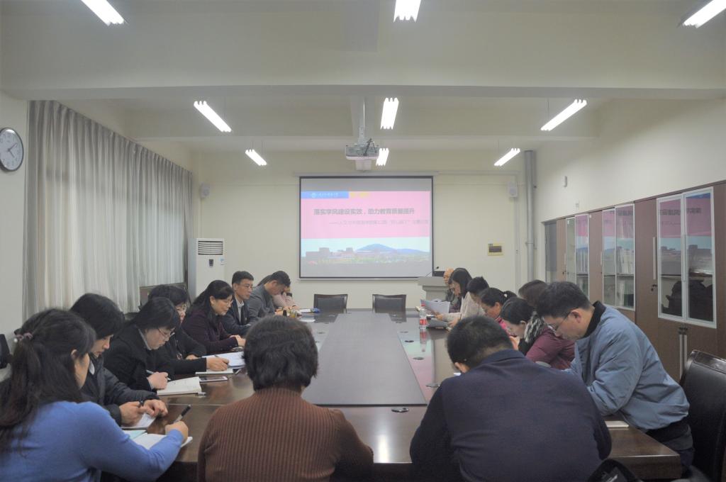 为进一步贯彻落实学风建设实效,助力教育质量提升,做牢做实“土壤工程”,12月18日下午16时,人文与外国语学院在主教A410会议室举办第12期“匠心园丁”辅导员沙龙,主题为“落实学风建设实效,助力教育质量提升”。学院党总支书记王新、学生处副处长鞠志强、副院长王晓东、各教研室主任、全体辅导员及班主任参加此次沙龙,学工办主任兼分团委书记马松主持。