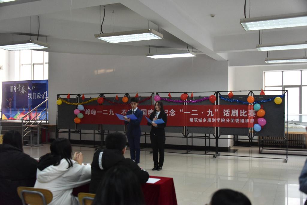 为激发广大学生的爱国主义精神,牢记饱受屈辱的历史,铭刻辛酸而坚强的岁月,近日,建筑与城乡规划学院于建筑馆二楼展厅举办“峥嵘一二九,勿忘爱国情”——纪念“一二·九”运动话剧比赛。希望借此机会,纪念“一二·九”运动,厚植爱国情怀。本次比赛由建筑与城乡规划学院学生会各部门负责人担任评委。