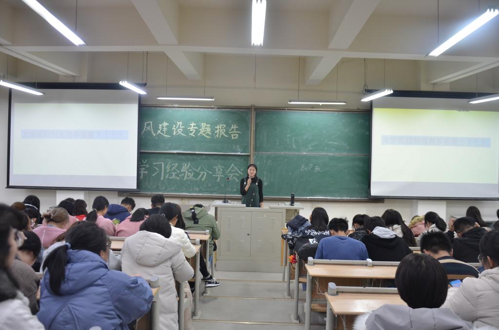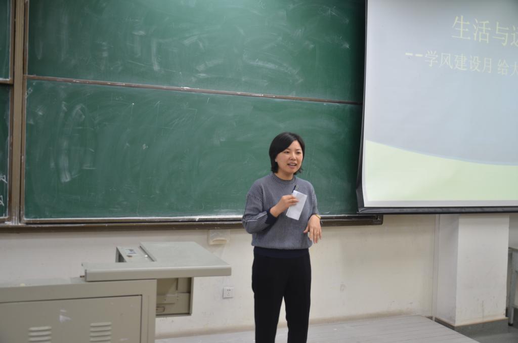 在学风建设专题报告中,刘洁在基础知识、培养兴趣及掌握时间等方面重点介绍自学的重要性,并为全体同学提出三点建议:一、多听多看,多阅读原版书籍;二、学习语言类专业需持之以恒;三、寻找兴趣所向,分清必须做的事情和尽量做的事情。而后,以“大学教育组基础教育的区别”与同学们互动。同学们积极回答问题,反响热烈。随后,赵建娅和赵国丽讲述大学专业规划及平衡学习及学生工作的重要性,穿插介绍部分重量级比赛及重点大学优秀学生榜样,激发同学们的学习热情,提供学习动力。