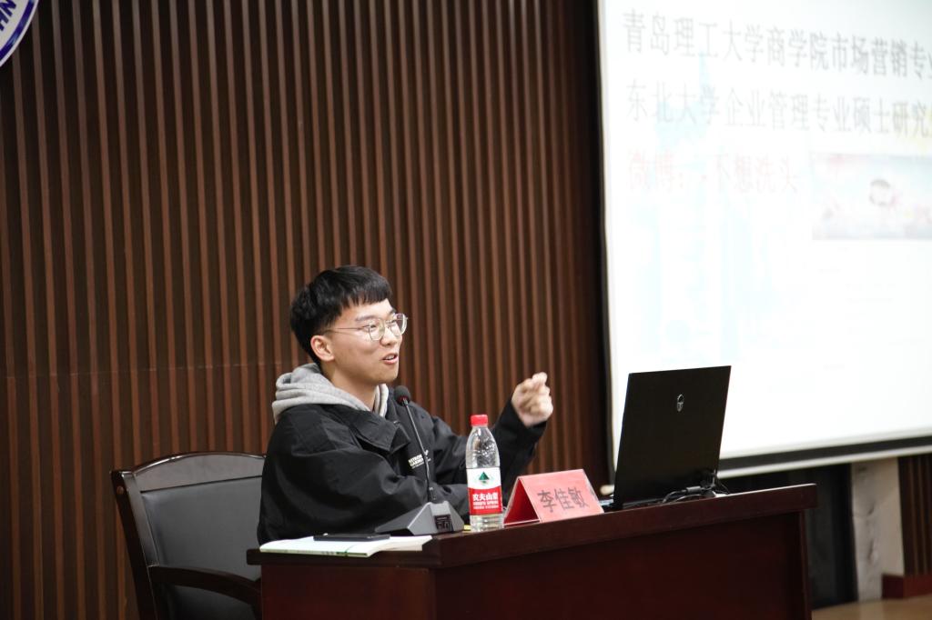 李佳敏以大学生的职业生涯规划为出发点,总结了自身在学习考证、科技创新、文体活动及学生组织等方面的宝贵经验,向2019级新生们传授了很多自己在科研竞赛方面总结的“干货”。他认为大学生职业生涯规划是每位大学生必备的技能,良好的规划可以为将来的大学生活做一个良好的铺垫;同时针对新生们普遍感兴趣的学生会和社团等方面的问题,李佳敏也与同学们分享了自己对于学生会和社团的看法。他结合自身学生时期的学生干部经历积极鼓励同学们加入自己心仪的学生组织,要在学生组织中培养自己主动担当的责任感和积极作为的集体荣誉感,同时也不能因此耽误了日常学习。讲座最后,李佳敏为在座的同学们开展了一次“佳敏小课堂”,向同学们讲解了管理学这门学科的重难点、易考点、易错点,并与同学们现场互动,以一位毕业学长的身份现身说法,用平实而幽默的语言娓娓道来,告诫同学们要珍惜大学时光,要为了自己心中的目标不断努力。