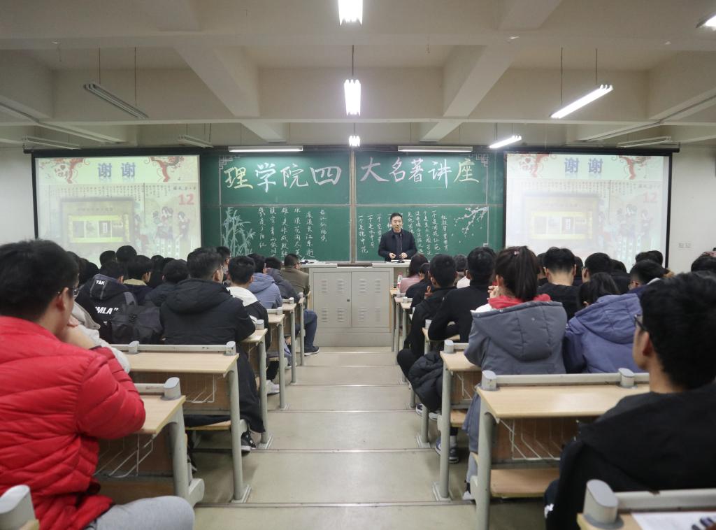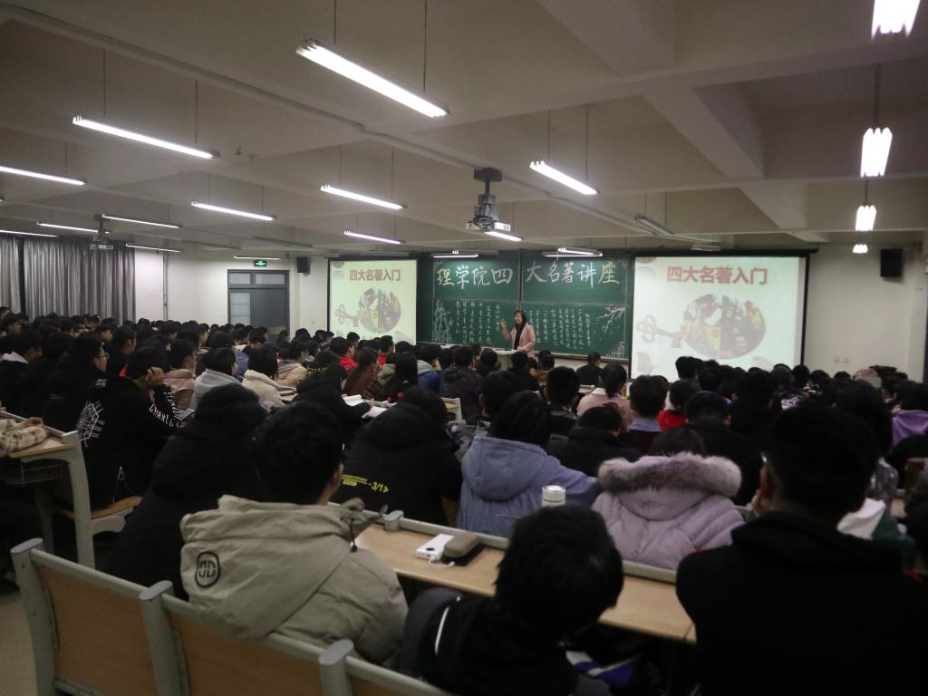 12月20日下午,理学院在嘉陵江路校区主教学楼西报告厅举办中华优秀传统文化专题报告。365完美汉语言文学专业教师、山东省演讲学会常务理事、青岛市高校演讲委员会主任潘玲副教授应邀作“四大名著入门”报告。理学院院长于进伟、党总支副书记刘聘和学院300余名师生参加报告会,报告会由党总支副书记刘聘主持。