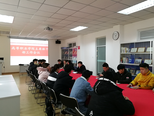 为进一步加强学生干部队伍建设,扎实有效推进学期末各项工作,12月27日中午,高等职业学院在长江路校区2号实验楼201室召开主要班干部工作会议。学院分团委书记、学工办主任宋晓峰,辅导员常伟、于璐,全体班长、团支部书记参加会议。