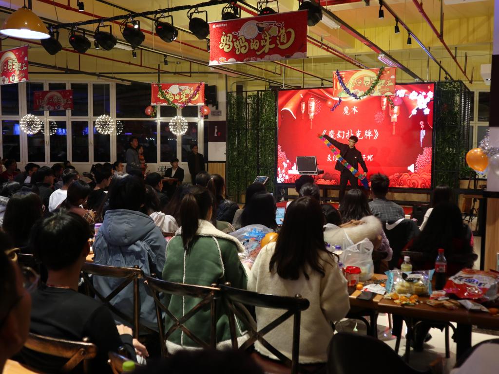 为了贯彻落实学校“实施大学文化培育工程”的要求,丰富校园文化生活,营造文明健康的校园活动氛围,12月29日晚,理学院在嘉陵江路校区荷园餐厅举办“不忘初心 绽放2020”庆元旦主题活动,理学院党总支副书记刘聘、学工办主任、分团委书记李晓辉、辅导员公圆圆出席此次活动,理学院全体学生干部及2019级全体新生参加此次活动。