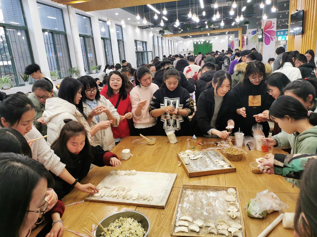 1月1日下午,思源餐厅洋溢着浓浓的节日氛围。长桌上摆满了包饺子所用的馅料、饺子皮、面团、擀面杖等食材和用具。活动开始前,大家纷纷围在长桌两侧拍照记录,并合影留念。活动开始后,2019级以班级为单位围在一起,揉面的揉面、擀皮的擀皮、装馅儿的装馅儿,每位同学都挽袖子、包饺子,积极参与到活动中来。由于地域文化不同、经验技巧不同,大家包出来的饺子也形态各异,千姿百态,令人捧腹。在活动中大家不仅一起话新年,还促进了地域文化的交流,餐厅时不时爆发出阵阵欢声笑语,气氛融洽而活跃,温暖而愉悦。