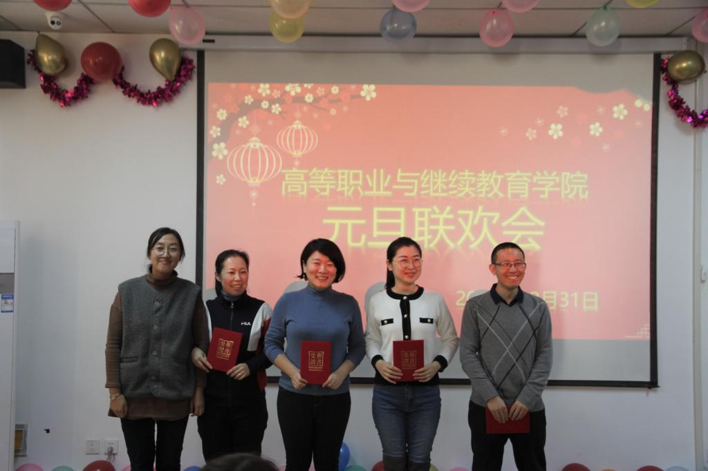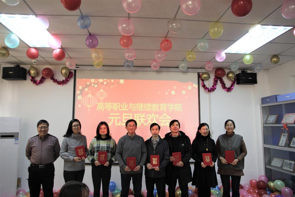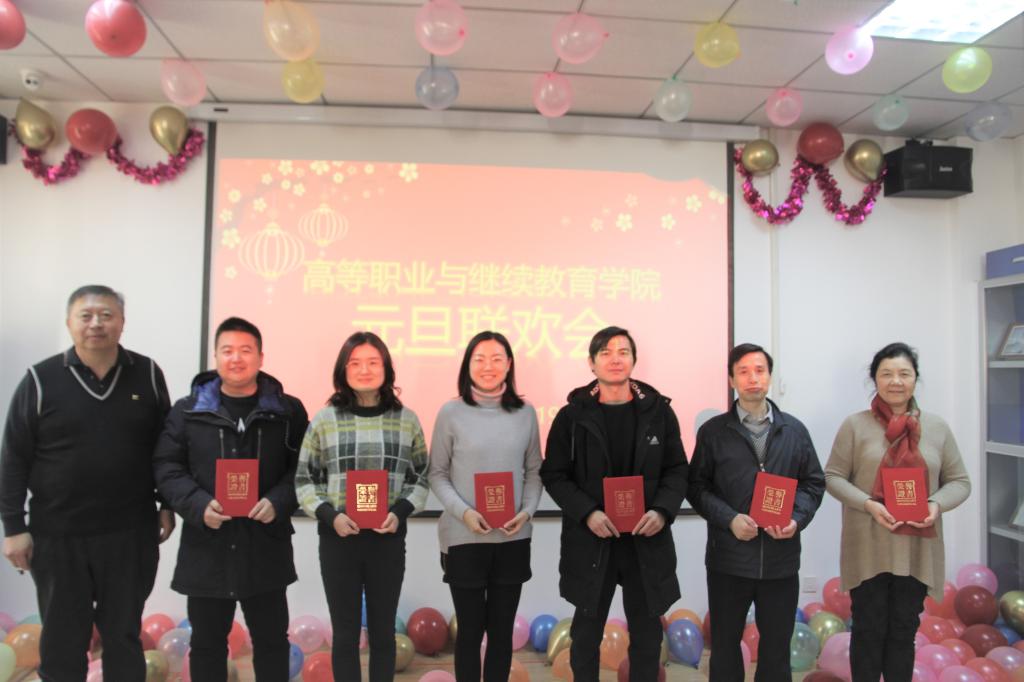 岁序常易,华章日新。为总结过去一年的工作,表彰为学院各项工作做出贡献的教职员工,共同欢庆元旦,吹响再出发的奋进号角,12月31日下午,高等职业与继续教育学院在长江路校区2号实验楼201举行2019年度总结表彰暨2020年元旦联欢会,学院党总支书记孟凡勇、院长施国盘、副院长冯学军和全体教职工参加,大会由党总支副书记范晓光主持。