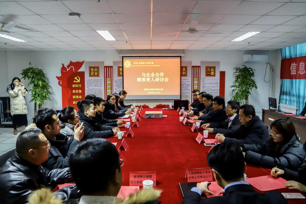 随后,校企双方就如何精准育人、提高人才培养质量进行了深入交流。董典同指出,校企合作是适应社会和市场经济发展的产物,学院历来重视对学生实践工程能力的培养,通过企业反馈与需求有针对性的培养人才,并结合市场导向,能够进一步提高人才培养的质量,实现互惠互利,合作共赢,形成“专业共建、人才共育、资源共享、优势互补”的校企合作人才培养模式。宋传旺就学院培养方案中的实践教学环节与企业负责人进行了深入交流。各企业负责人积极发言,纷纷表示愿意深度参与学生培养,选派业务骨干走进校园为学生开展专业讲座,帮助学生了解行业前沿知识,尽早清晰以后的就业方向,找到自己的兴趣点。校企双方均表示应多联系交流,并期待能开展更深度的合作。