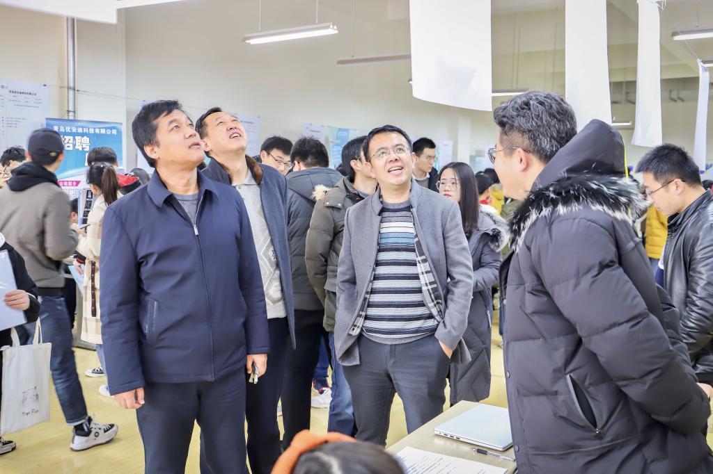 为更好地服务2020 届毕业生就业,促进毕业生多渠道、高质量、更充分就业,1月3日上午,信息与控制工程学院于嘉陵江路校区西区体育场举办“追梦·致远”2020届毕业生(研后场)就业双选会,来自省内外的50余家用人单位应邀参会,毕业生近500人参会,低年级近千人到现场观摩。学生工作处副处长鞠志强、申维东,信息与控制工程学院党总支书记董典同、副书记曲良波、副院长赵景波在招聘现场与参会单位负责人进行了深入交流。
