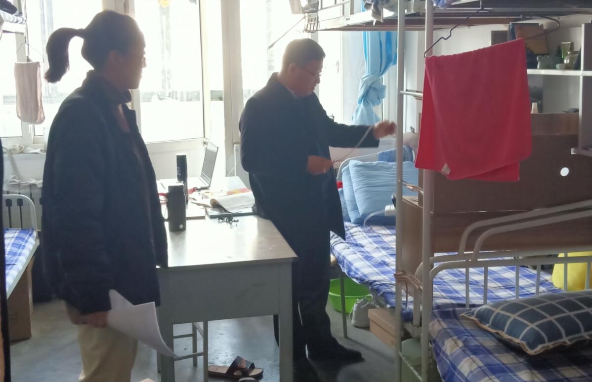 检查结束后,施国盘指出,校园安全重于泰山,直接关系到师生的健康和生命安全,要高度重视、长抓不懈;冬季是火灾易发多发期,要进一步增强责任担当,筑牢安全稳定防线,及时排查解决各类安全隐患;要进一步强化学生的安全教育,着重加强宿舍安全、消防安全、人身安全、网络安全、交通安全教育,确保校园安全稳定。(撰稿:宋晓峰;审核:孟凡勇)