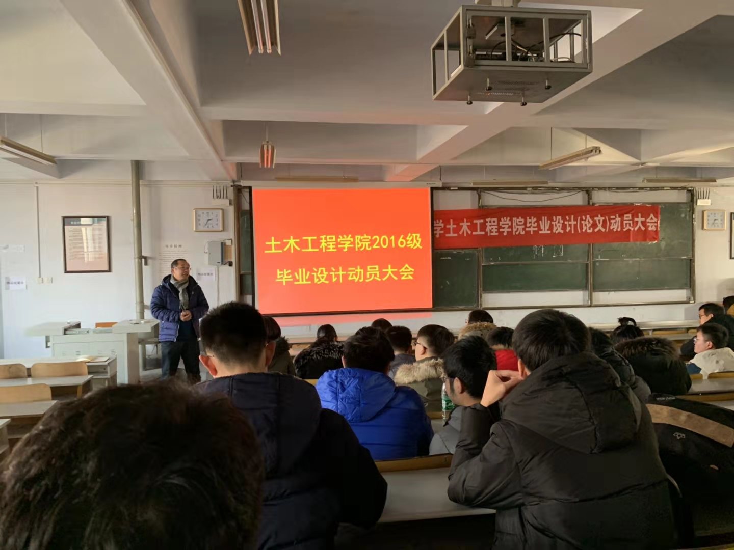 12月26日,土木工程学院召开2016级本科生毕业设计动员大会。党总支书记曲成平、 副院长李绍纯,2016级本科生、指导老师、毕业生辅导员参加会议。