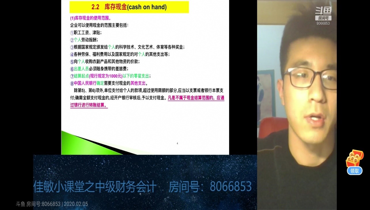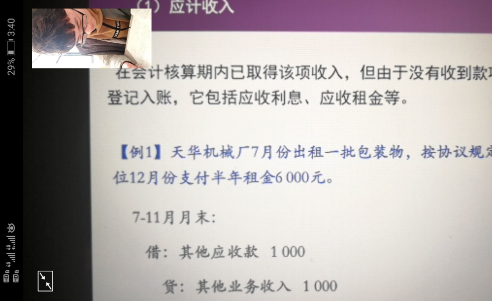 图为佳敏补习班班长,财务管理174班杨晨正在进行中级财务会计补课线上直播