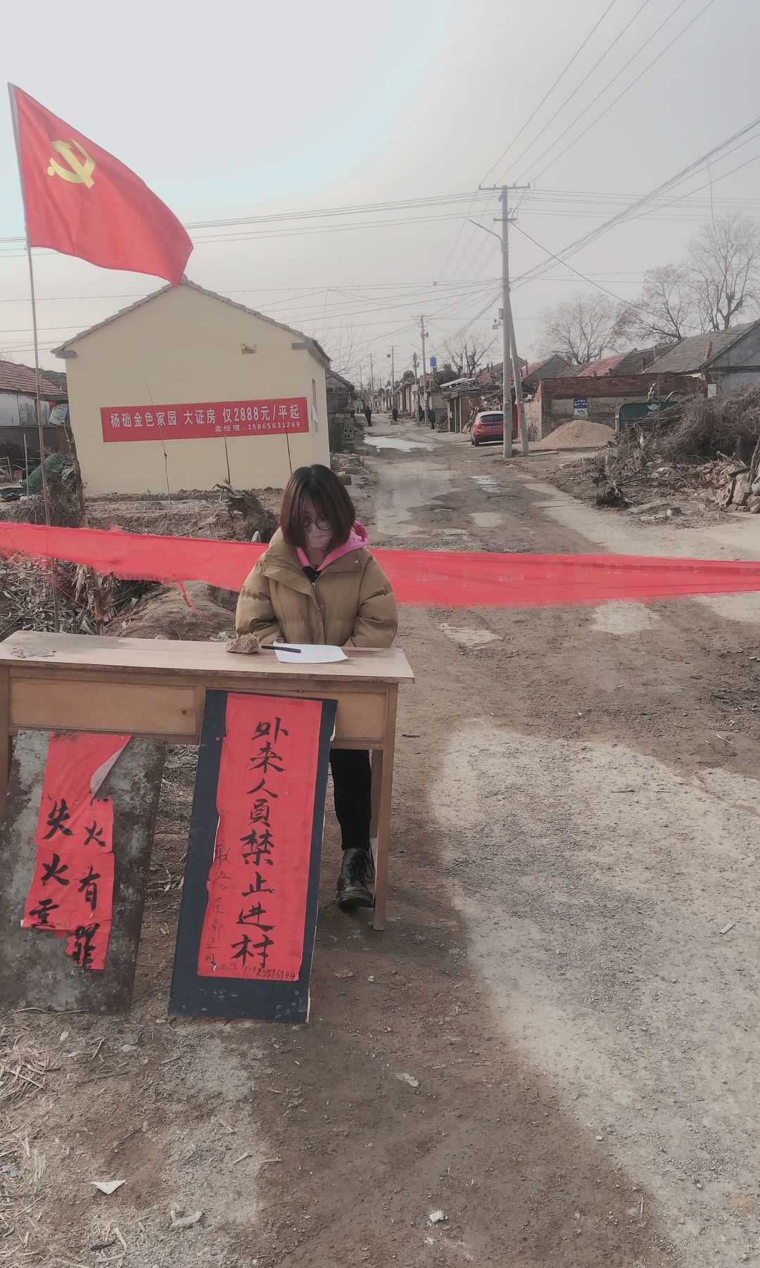 建电193班郝雪妍,山东省烟台市栖霞市观里镇大郝家庄村人,1月26日到1月31日,她同村支部书记与其他村干部一起拉横幅,在村头对外来人员和往返人员进行严格的登记。郝雪妍跟其辅导员薛腾说道“严格控制村口人员流动可以有限的防止疫情的传播,积极响应国家号召,充分了解村内人员情况,此次志愿服务活动让我终身难忘”。