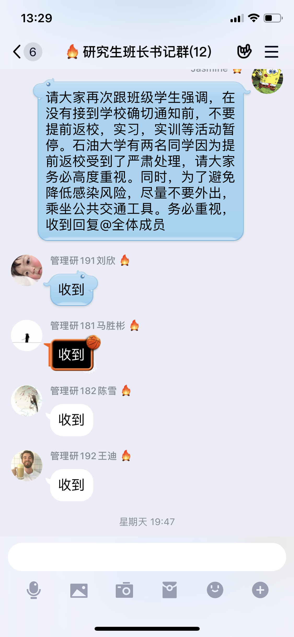 自防控疫情这场没有硝烟的战争吹响号角以来,管理工程学院严密部署、积极推进,扎实做好学生防控工作,守好学生工作防线。学院在巩固本科生教育成效的基础上,对研究生管理也毫不松懈,从组织领导、拓展载体、压实责任等方面多处发力,全面及时掌握研究生动态。