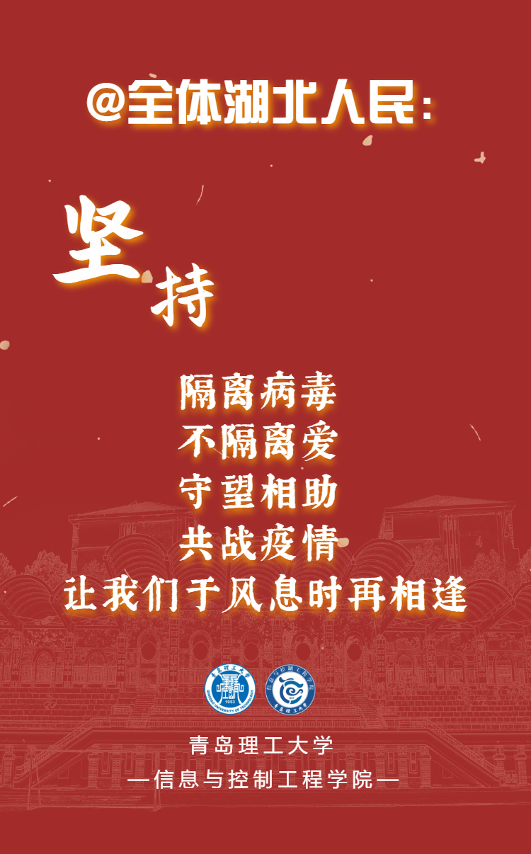 精心制作“同心战‘疫’——抗击疫情,同舟共济网上助力活动”。号召365完美体育学子为武汉加油,为中国加油!向每一位奋战在一线的医务工作者致敬,向每一位科学防护的中国人民致敬,坚定信心,科学防护,风雨同舟,携手共济!