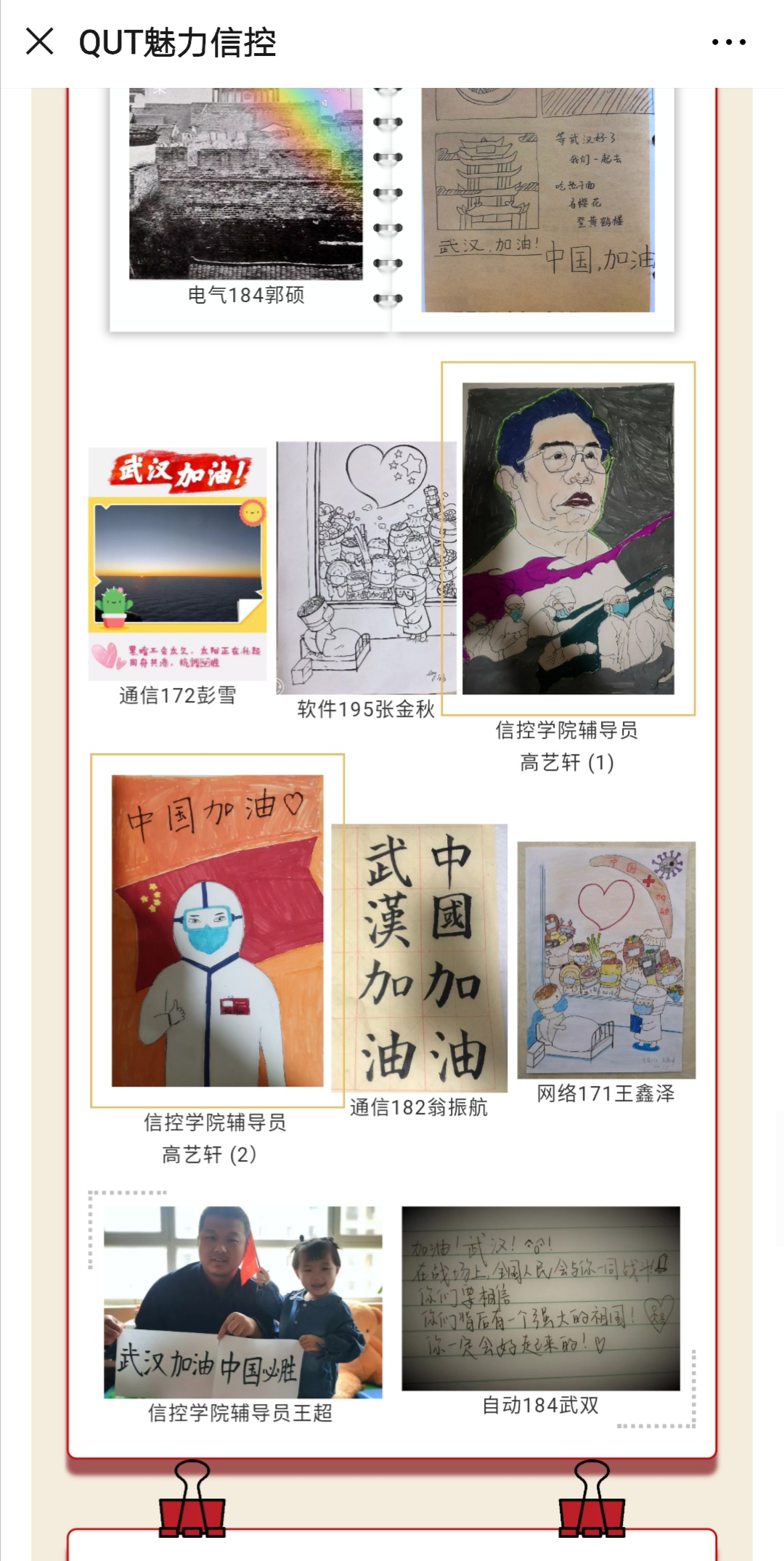 以“我想对武汉说的话”和“疫情结束后,我最想做的事”为主题展开网上作品征集活动,学院师生积极参与投稿,共收到作品40余份,全部在微信号进行展示,起到了良好的宣传引领效果。