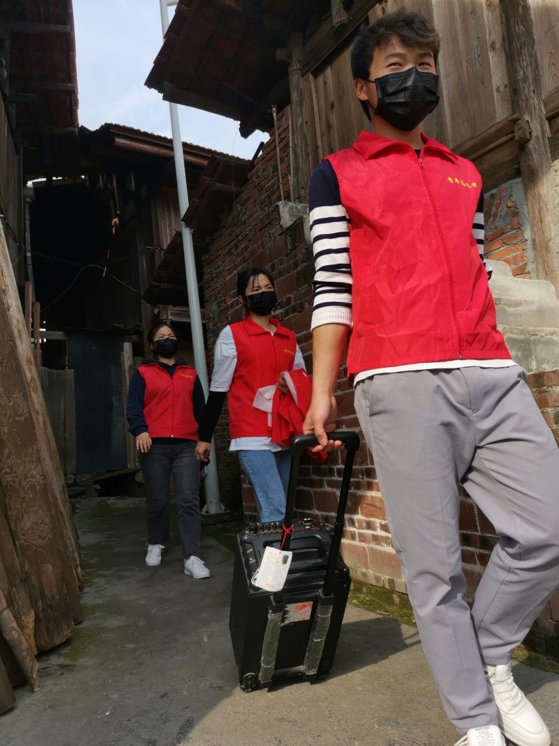 走村串巷,彰显青年勤奋之风。虽然他们不能像医护人员一样奋战在一线,但是用自己的方式尽自己所能去配合村委和驻村干部做好疫情防控宣传工作,大家分成三个小组,编写疫情防控演说稿,穿上志愿服、带好口罩、提着录音机,上至寨头,下至寨尾,全寨无死角,实行一日两宣传,把录好的疫情防控演说传播到每家每户。他们提着录音机在路上播放,就是为了让每一个村民都能听到,特别是年龄比较大的老奶奶、老爷爷,让他们知道,疫情严重,患者与日俱增,要做好防控。面对新型冠状病毒的肆虐,他们一天又一天、一遍又一遍、一次又一次的提着录音机走遍裕和村的每一条大街小巷,尽已所能,为抗击疫情贡献爱心和青春力量。