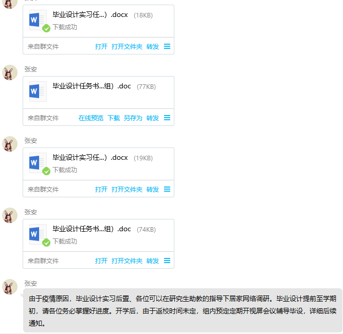 在毕业设计方面,风景园林专业毕业设计指导老师积极与同学们对接,通过网络会议等手段开展毕业设计的辅导推进工作。朱蕊蕊老师所指导的“基于自然教育理念的城市儿童公园景观规划与设计”毕业设计课题组于2月17日召开了第一次网络会议,在会议中朱蕊蕊老师向同学们说明了此次毕业设计的大致安排,同时就课题的理解与问题等方面与同学们进行了深入的探讨,对同学们提出的相关问题进行了解答,课题组内的罗佳渝同学表示:“学院的老师在现在这种状态下给了我们大家最大限度的帮助,我们也一定会积极认真地为毕业设计做好充足的准备”;同时,张安老师也分别为所带领的“青岛市东海路步行空间优化提升设计”与“青岛市崂山青山渔村活化计划”两支毕业设计课题团队提供了充足的参考资料。张安老师指出,在寒假居家期间希望我们能认真阅读学习相关学习资料,打好开展毕业设计的理论基础,并鼓励我们提前开展毕业设计的前期准备工作,以保证我们在假期期间保持着较高的学习积极性与能动性。