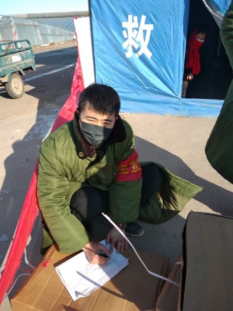 家住山东省潍坊青州市东夏镇东杨村的杨宁,是学院2016级一名大学生党员,面对严峻的疫情防控形势,牢记习近平总书记重要指示精神,勇敢担起防控责任,投身防控疫情一线,加入到村里的疫情防控队伍中去,全力构筑一道疫情防控堡垒,切实保障社区居民的身体健康和生命安全,用实际行动践行自己入党时的初心和使命。
