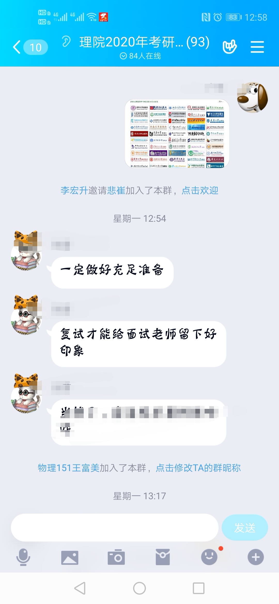 计科161李美春说道,没想到群里的大教授这么客气,为自己的提供了全方位的指导,让自己更加有信心面对接下来的复试。