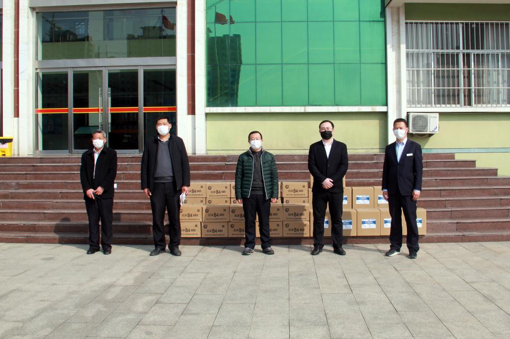 3月10日,中铁诺德物业管理有限公司向校区捐赠2000只口罩,400斤酒精,600斤84消毒液。在校区办公楼前,物业公司经济管理部总监李阳代表中铁诺德物业捐赠,校区管理办公室常务副主任崔洪俊代表校区接受捐赠。