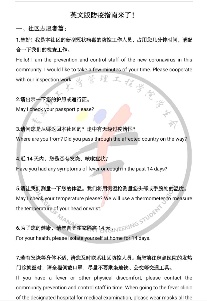 对于花费很多的时间和精力编织出来的英文版防疫指南,她们表示作为当代青年大学生,能用自己所学的知识为防疫工作做点事情,感到非常高兴,希望她们的努力能帮助更多的社区工作人员和外籍人士更好地沟通,共同做好社区防疫工作。
