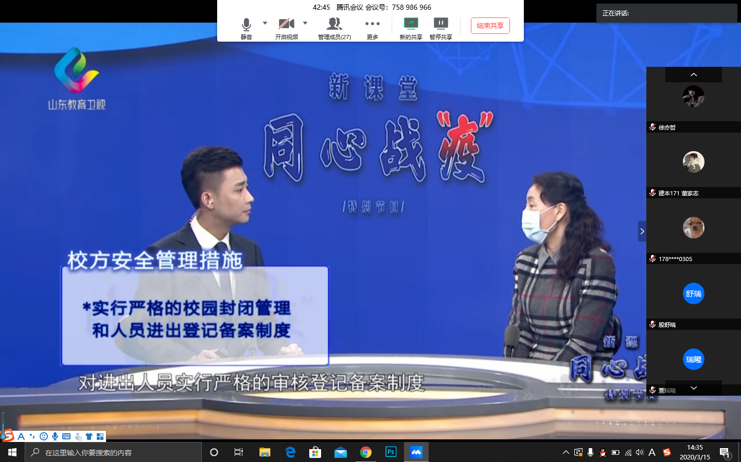 3月14日至20日,山东教育厅委托录制的开学前疫情防控规范培训特别节目在山东教育电视台播出,为做好科学实施开学条件准备,指引广大师生提高开学后的防疫水平,做好开学准备,建筑与城乡规划学院在开播当日,积极通知并组织学校教职工、学生和家长按时收看。