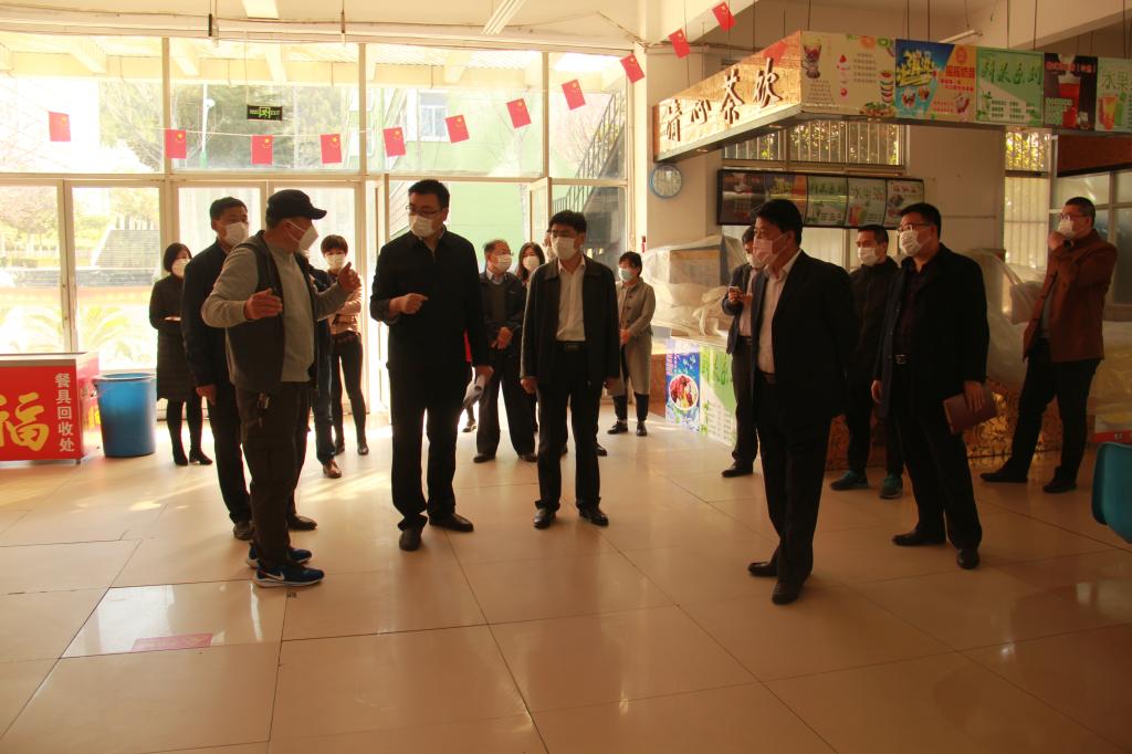 自疫情发生以来,校区疫情防控工作在学校党委、行政的坚强领导下,积极应对,勇于担当,为确保校区各项疫情防控工作符合《山东省高等学校2020年春季学期开学条件核验细则》要求,3月19日上午,校区党委常务副书记李国涛,校区管理委员会副主任刘清晨,校区党委委员、校区党政办公室主任窦传海一行到校区各重点疫情防控区域检查指导新冠肺炎疫情防控和开学准备工作,校区疫情防控工作领导小组办公室成员一同参加检查。