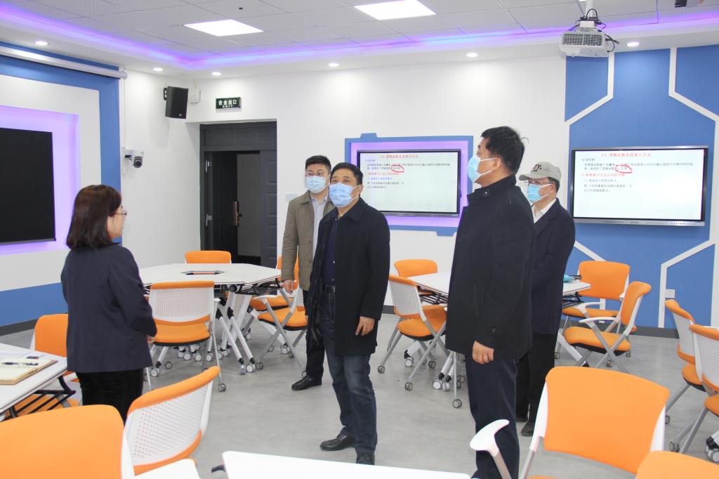 王在泉副校长及教务处领导一行来到嘉陵江路校区智慧教室张民老师授课现场观摩与指导,党总支书记董典同现场陪同。周玉国院长和其他班子成员加入教师线上课堂,人均4—5门课程全程听课。重点关注教师直播教学效果、教师语言规范性、学生考勤以及在线课堂互动等情况,确保在线教学质量。学院领导与院督导们在听课过程中发现一批优秀线上教学案例,随后将向全院老师进行了推荐共享,以供老师间交流借鉴,进一步提升在线授课成效。