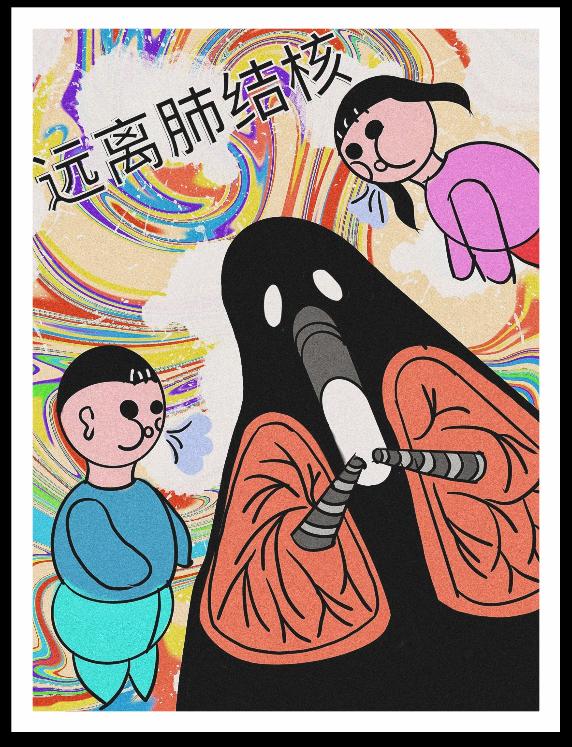 环境设计173王鹏宇的一幅海报作品《科学预防肺结核》是为了纪念1882年德国微生物学家罗伯特·科霍向一群德国柏林医生发表他对结核病病原菌的发现,以此提醒公众加深对结核病的认识。