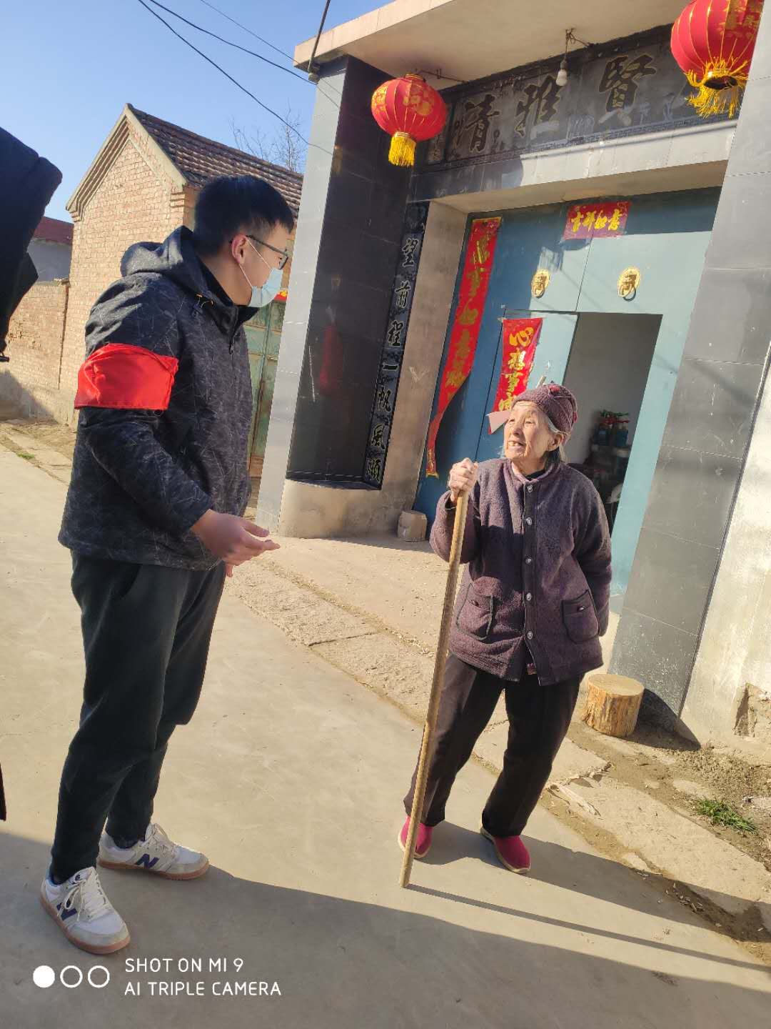 管科1910王通在家乡山东郓城武安镇海王村村口做志愿者