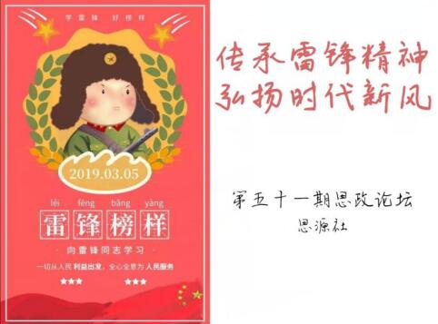 3月24日,土木工程学院第五十一期思政论坛以线上视频会议形式开展,本期论坛是学院“云上思政课”系列活动之一,以“传承雷锋精神,弘扬时代新风”为主题展开,由思源社会长孙昊天主讲,学院2018级、2019级各班团支书及思源社全体成员参加本次论坛。
