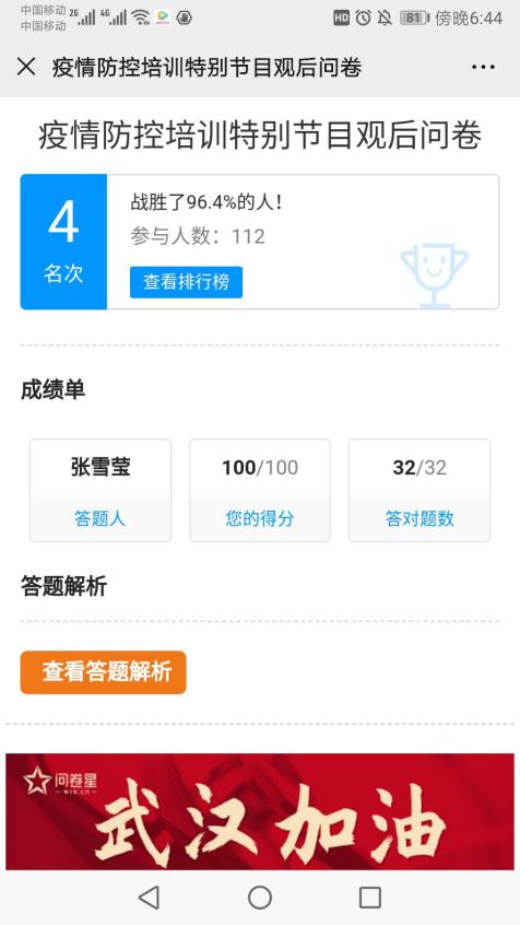 为了检验同学们对直播内容的掌握程度,保证学校日后工作的顺利开展,商学院研究生会以问卷的方式对同学们进行了测试。问卷题目围绕着直播中老师们所讲述的重点知识进行展开,包括教室的消毒工作、宿舍的清洁和打扫问题以及个人餐饮和学校食堂应注意的问题。问卷结果以班级为单位进行整理,同学们积极参与,认真思考问题,全体研究生成绩均为优秀。