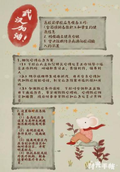 为了更好地宣传防疫知识,商学院研究生会用手帐的形式记录了这七期特别的节目,并在“商研韶华”微信公众号进行宣传。精心制作的手账分别记录了开学前应该做哪些准备工作、家庭应该如何做好防护工作、如何正确使用消毒剂等疫情防护规范。商研192班团支书刘伟乐说:“虽然我们不能亲临战场,但我们可以发挥特长,用手账的形式将节目重点进行整理,新颖、有趣的图像和文字能够帮助同学更好的掌握防疫知识。”