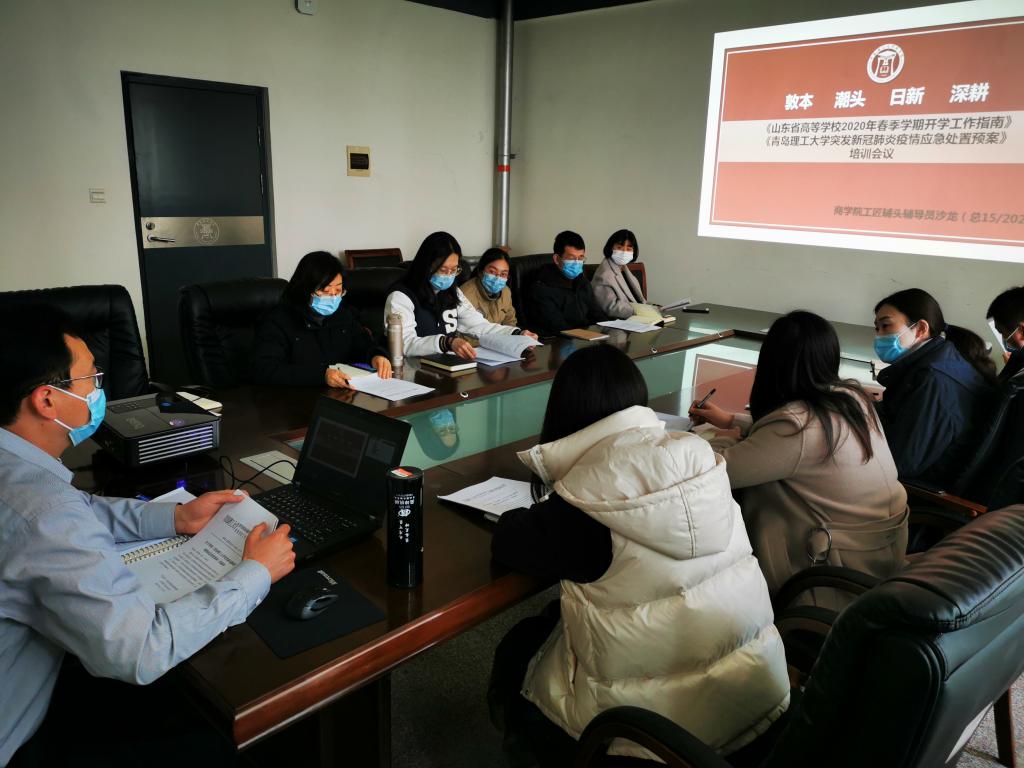 本期“工匠辅头”辅导员成长沙龙主题是《山东省高等学校2020年春季学期开学工作指南》和《365完美体育突发新冠肺炎疫情应急处置预案》培训,彩排学校“新冠肺炎防控演练”相关工作。董兰国从大学生开学前学院所需做的准备工作、学生开学返校注意事项、日常防控注意事项、突发疫情应急处置规范和流程等十个方面,详细介绍了2020年春季学期开学学生工作要点和注意事项,并对学院春季开学前新冠肺炎疫情防控工作进行了重点布置。随后,参会辅导员立足自身工作,对如何在疫情下开展学生思想政治教育和生命健康教育,培育学生家国情怀和社会责任意识展开交流讨论。
