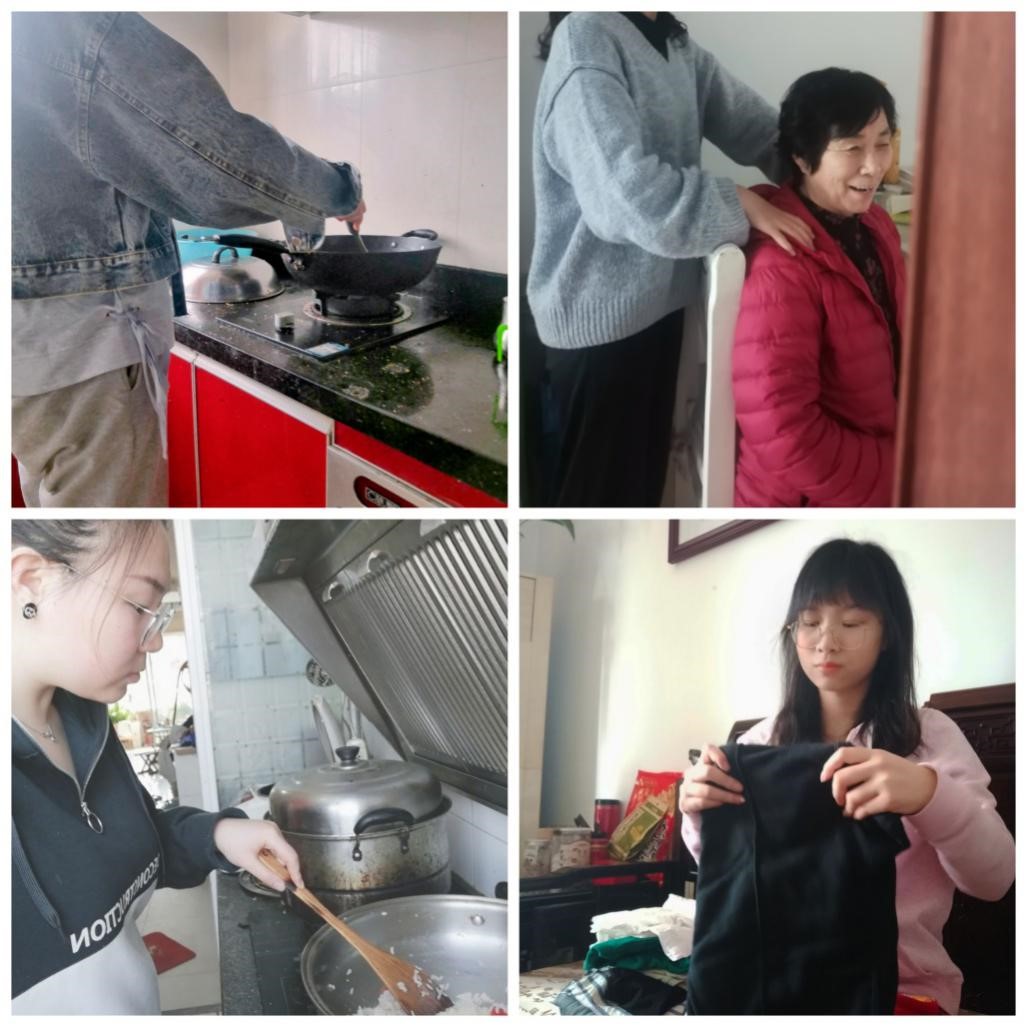 以力所能及,为父母分忧:定格的画面里,展现着商学院学子给父母做饭,帮助父母做家务、做农活的一幕幕场景。受疫情影响,同学们有了更多与父母相处的时间。这段时间里,商学院学子用实际行动表达着他们为人子女的责任,表达着他们对父母的感恩与深爱,“谁言寸草心,报得三春晖。”商学院学子将用珍惜与陪伴表达对家人的爱,用奋斗与拼搏来报答家人的恩情。