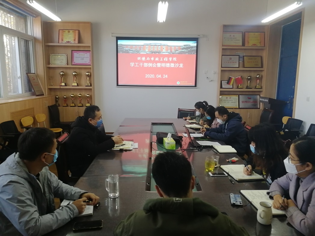 为进一步贯彻好立德树人根本任务,在新冠肺炎疫情防控工作过程中更好的开展学生工作,梳清理细工作任务和重心,查缺补漏找短板;4月24日,环境与市政工程学院于1教214会议室召开学工干部例会暨明德微沙龙。学院党总支副书记邵长飞,学工办主任兼分团委书记张恬和全体学生工作干部参加此次会议。