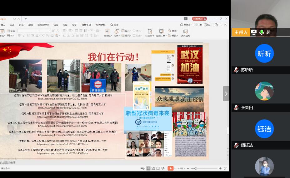 学生党支部共开展疫情相关主题活动8个,包括:“疫情志愿服务”优秀事迹线上案例分析系列活动、《关于组织收看疫情防控特别节目的通知》线上支部大会等。团支部积极开展“众志成城·共战疫情”主题团日活动、“一起运动,团结战‘疫’”“抗疫勇担当、文明修身行”主题教育活动等,真正做到了党有号召,团有行动,党团联动,发挥先锋带头作用。