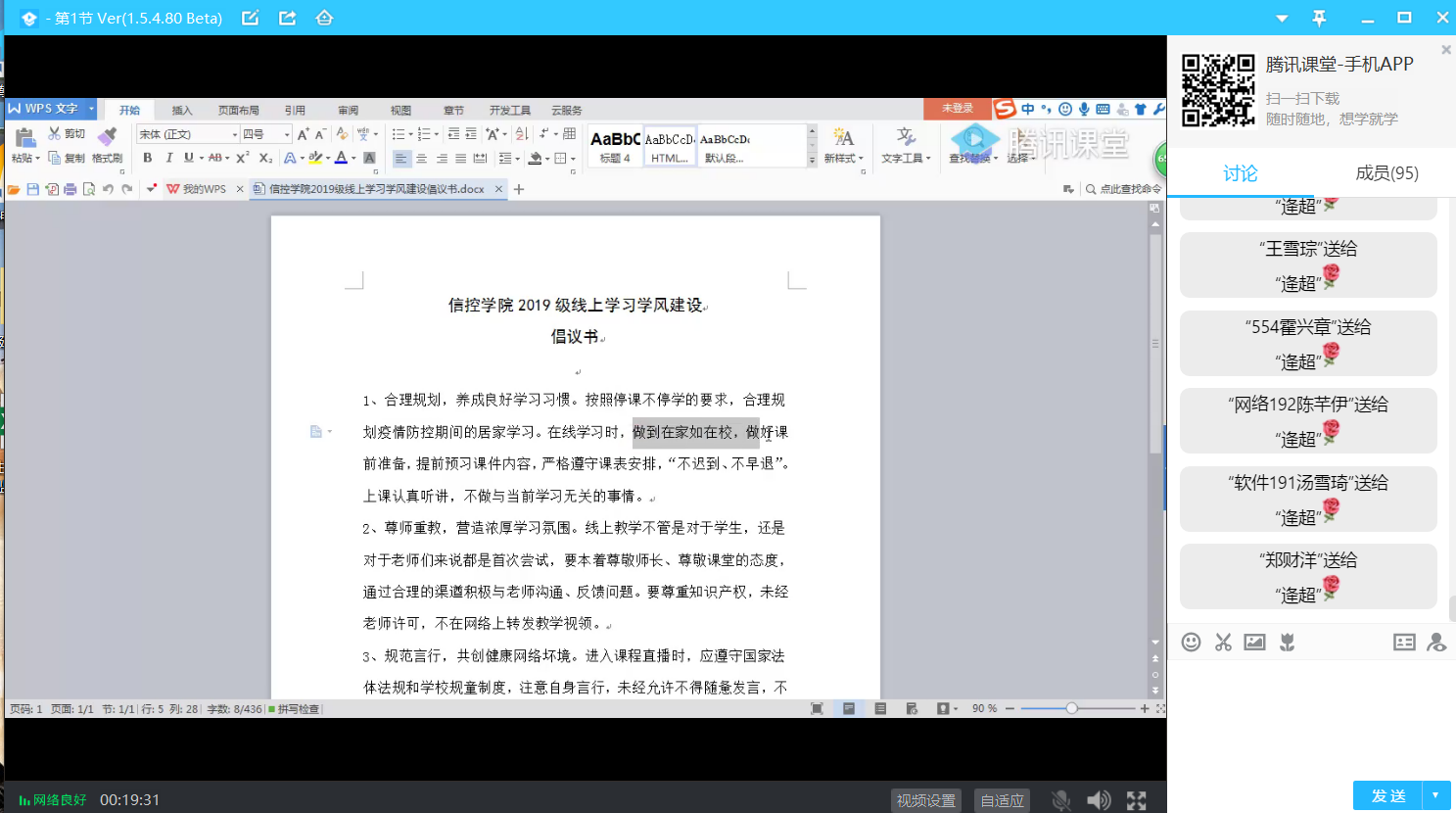 在疫情防控的特殊时期,通过有形式有内容的学风建设活动,解决学生在思想认识、学习技巧等方面的适应性问题,增强学生的学习积极性和主动性,提高线上学习效率和质量,引导学生真正适应居家学习模式,保质保量的完成学习任务。(撰稿:逄超;审核:曲良波)