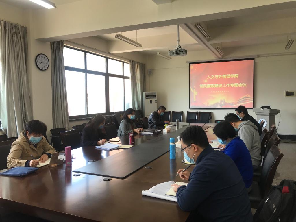 4月27日上午,人文与外国语学院在嘉陵江路校区主教学楼A410召开学院党风廉政建设专题会议,学院党政领导班子全体成员、院长助理参加会议,会议由学院党总支书记王新主持。