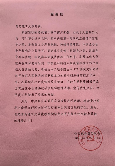 为弘扬奉献、友爱、互助、进步的志愿者精神,号召同学们积极学习新时代雷锋精神,踊跃投身志愿服务当中做正能量土木人,3月18日下午,土木工程学院线上举办第二届志愿服务节开幕暨新冠疫情防控志愿者表彰大会,旨在表彰在疫情防控工作中表现突出的个人,鼓励更多青年大学生参与到志愿服务中来。通过典型的引领示范作用,学院共有114名同学先后投身到疫情防控工作中,收到各地基层社区感谢信50余封,产生了良好的社会影响。