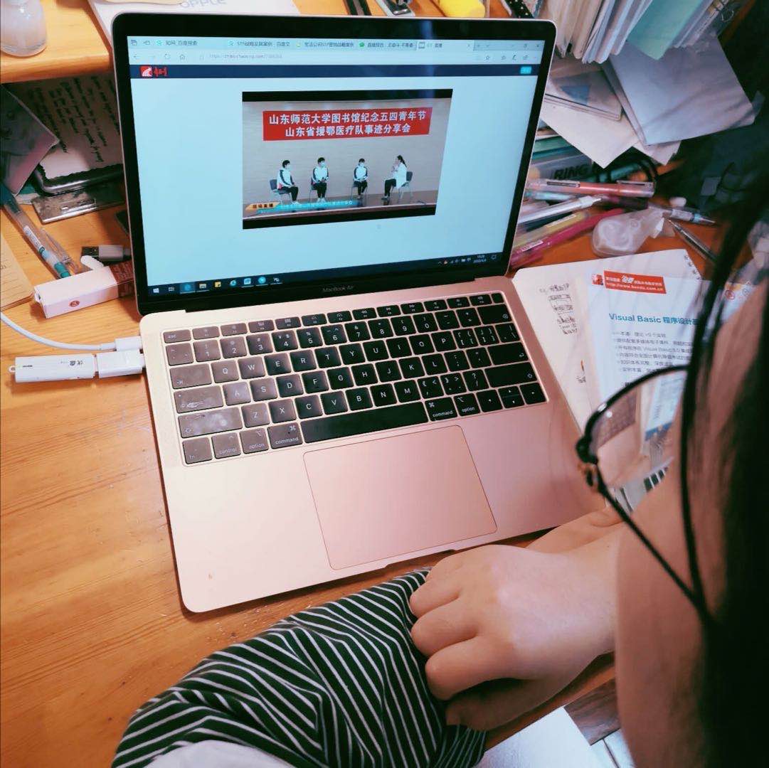 图书馆通过推送此次分享会,希望用援鄂英雄们的真情和真事来感染和感化广大青年馆员、青年学子和青年读者,号召广大青年师生以山东援鄂医疗队的英雄们为榜样,立足工作和学习岗位继承和弘扬“五四”精神,在实践中放飞青春梦想,为广大青年人上一节线上生动的青年节思政课。观看直播的青年师生被援鄂医护人员甘于奉献、勇挑重担事迹感动,深受鼓舞,纷纷表示要以勤奋工作、刻苦学习的实际行动弘扬“五四”精神,为学校事业发展和祖国繁荣富强建功立业、发奋成才。(撰稿:史美芳;审核:甘露露)