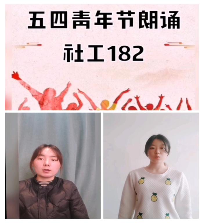 社工182班团支部在接收到学校和学院的安排和指示后,在班委群内讨论,建立五四团日活动专题小组,筹备此次团日活动。活动以录制朗诵视频形式开展,团支部成员积极参与到此次团日活动当中,颂扬五四精神,感悟时代召唤,发出青春声音。
