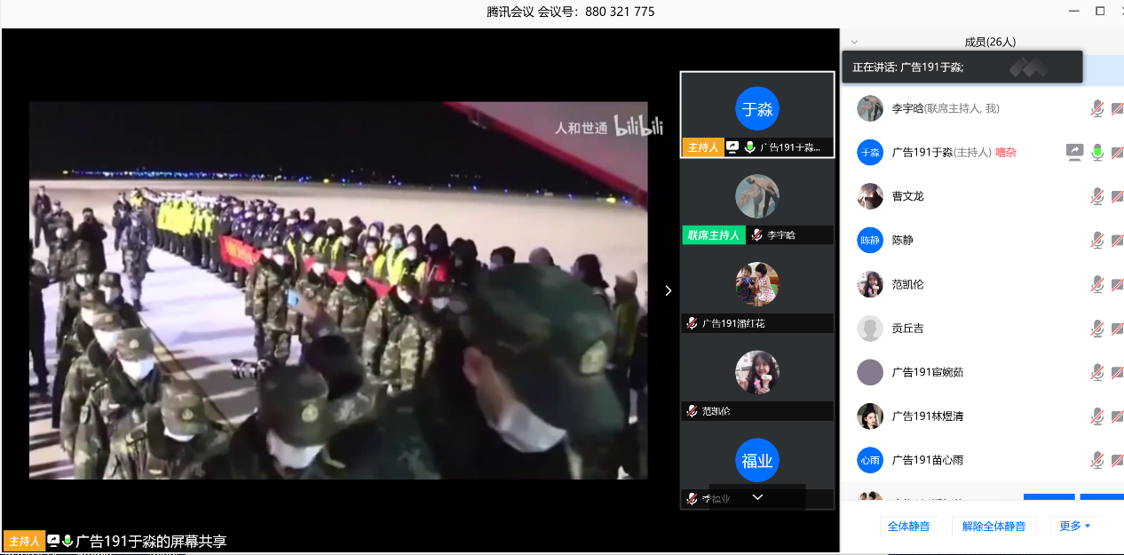 广告191团支部于5月1日以团课的形式开展“五四精神永存 时代呼唤英雄”主题团课线上会议。会议中团支书于淼同学向大家讲解101年前五四青年的爱国之举,一同回望那段历史,重温100年前那段激情燃烧的岁月,加深对五四运动历史意义和时代价值的认识。此外,团支书组织一起观看纪念五四运动101年的相关视频,并用文字写下此次团课学习的深刻体会。