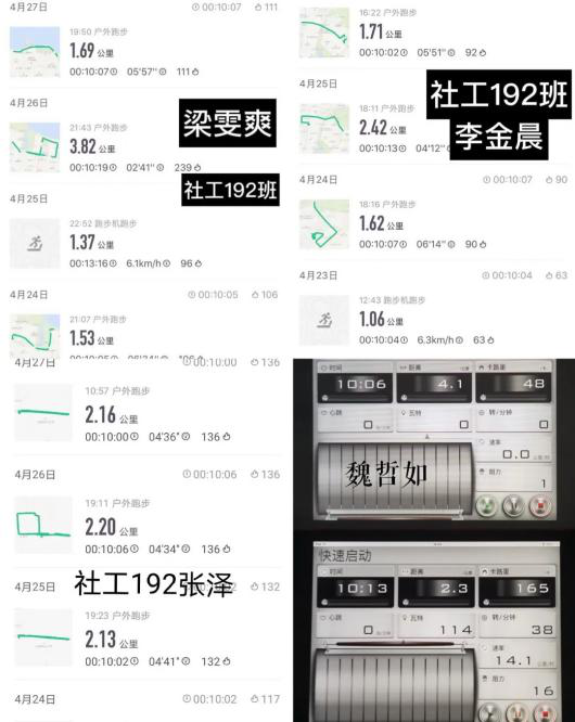 为更好地营造“六Jing一警”公寓文化氛围,增强文暖寓语公寓文化内涵,增进室友之间的凝聚力,丰富学生“疫”样的假期,人文与外国语学院于4月23日-4月30日开展了“文暖寓语”第十四届公寓文化节开幕式系列活动之力争上游“竞”卓越——线上跑步打卡活动。