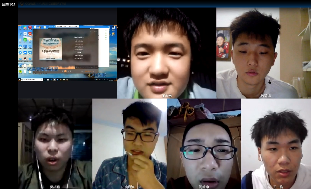 信通195班团支部、建电193班团支部以支部为单位,通过云合唱的形式唱响了《我和我的祖国》,青春、向上、奋进的旋律,表现出当代青年深厚的爱国情怀。当谈起合唱这首歌的初衷时,信通195班团支书郭诗雨表示:“爱国主义精神是五四精神的核心,在这次抗击疫情战役中,我们看到了一群群可爱的人舍小家为大家的家国情怀,更看到了大国担当。所以作为正值青春的我们,为我们的祖国骄傲和自豪,想通过合唱这首歌来赞美我们的祖国同时表达对祖国的爱!”