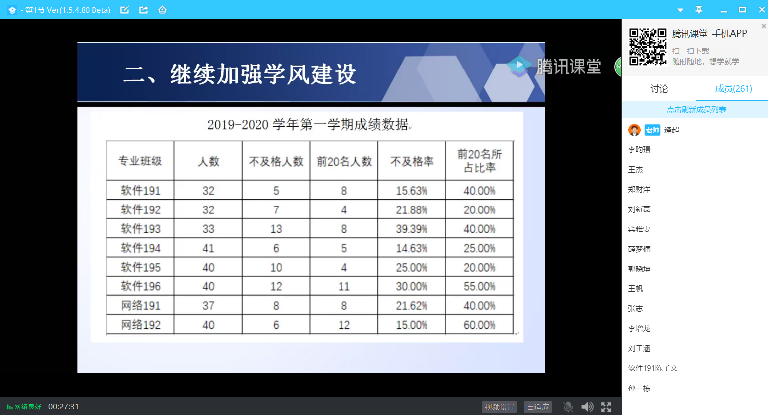 在会上,辅导员逄超强调了目前要疫情防控和线上学习两手抓。在疫情防控方面,当前我国疫情形势持续向好,但也要严防无症状感染者和境外输入型病例的风险。全体同学要思想不懈怠,严格遵循学校和学院关于疫情防控的各项工作要求,认真学习开学安全返校规范,配合做好开学条件核验,同时在家要勤洗手、多通风,远离人口密集之处、避免与他人的接触,保障自身安全。在线上学习方面,先是分析了网络、软件专业大一上学期的学习成绩,鼓励大家充分利用这段时间,查漏补缺。要合理安排时间,做好学习计划,适应不同形势下的学习环境,提高学习的主动性,做到“停课不停学”,认真参与线上课堂,尊重老师的教学工作,及时反馈线上课堂中遇到的问题或困难,保证学习的质量和效率。