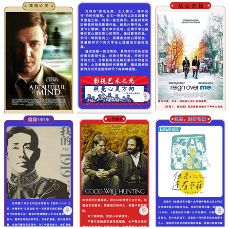 活动前期,通过QQ、易班平台媒介进行线上宣传和活动报名,同学们根据兴趣选择具有时代和历史性的相关影视作品、纪录片等电影进行赏析,通过图片形式将赏析过程上传到易班中,并分享自己的观影感受,在易班平台投票选拔出“你心中最优秀”的观后有感篇章,最终通过网络线上评选,角逐出五篇优秀佳作。此外,心理协会还分享了其他包含心理学知识的电影篇目,鼓励同学们后期进一步观赏和学习,活动以生动形象的方式,潜移默化地将心理健康的理念和知识传递给学生。
