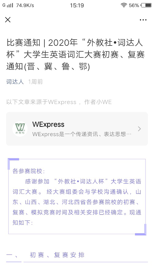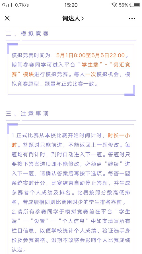 本次词达人词汇大赛由上海外语教育出版社与山东省本科教育大学外语教学指导委员会联合主办,是一次面向1-4年级非英语类专业在校大学生的词汇单项比赛。初赛由教务处和人文与外国语学院联合举办。