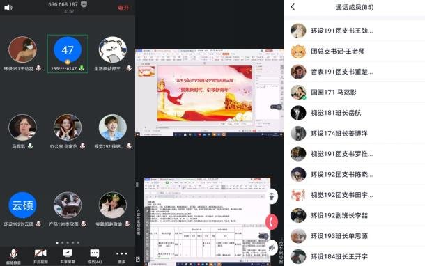 为扎实做好疫情常态化防控工作,扎实做好大学生思想政治教育,激发青马组织活力,着力培育和践行社会主义核心价值观,5月13日晚,艺术与设计学院通过腾讯课堂举办“聚焦新时代,引领新青年”第三期青马学员培训。着力推动第二课堂项目建设,提高青马学员的使命感、责任感。活动由学院学工办主任、分团委书记王俊富主持,艺术与设计学院各班班长、团支书以及学生会全体成员参加此次活动。