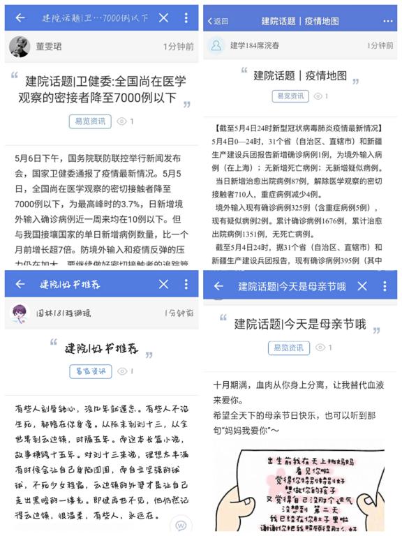 为推进优良学风建设和培养学生自律习惯,保证疫情期间同学们健康充实的居家学习生活,提升建筑与城乡规划学院易班分站的工作水平,不断增强平台的引领力、传播力、影响力。从疫情开始到现在,建筑与城乡规划学院在易班工作方面取得了重大进步。其中包括文件政策类、疫情知识防控普及类、活动宣传类、学院新闻类的推送累计138篇,并积极协办校易班发展中心的活动。
